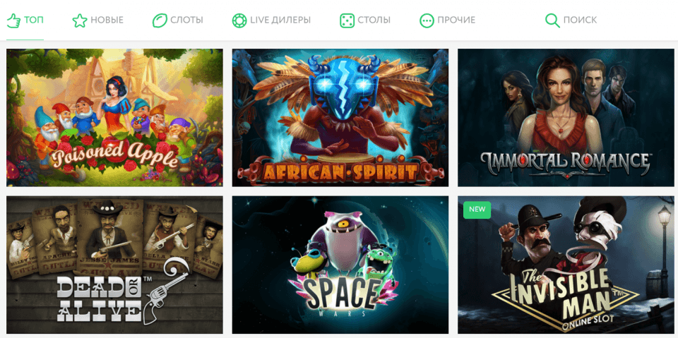 Для любителей слотов рум предлагает большой выбор игровых автоматов. Среди создателей автоматов вы сможете встретить множество уже известных и ведущих разработчиков, а также пока ещё набирающих популярность. Площадка предложит вам слоты от Microgaming, Yggdrasil, Novomatic, Quickspin, Netent, Booongo и Playson.